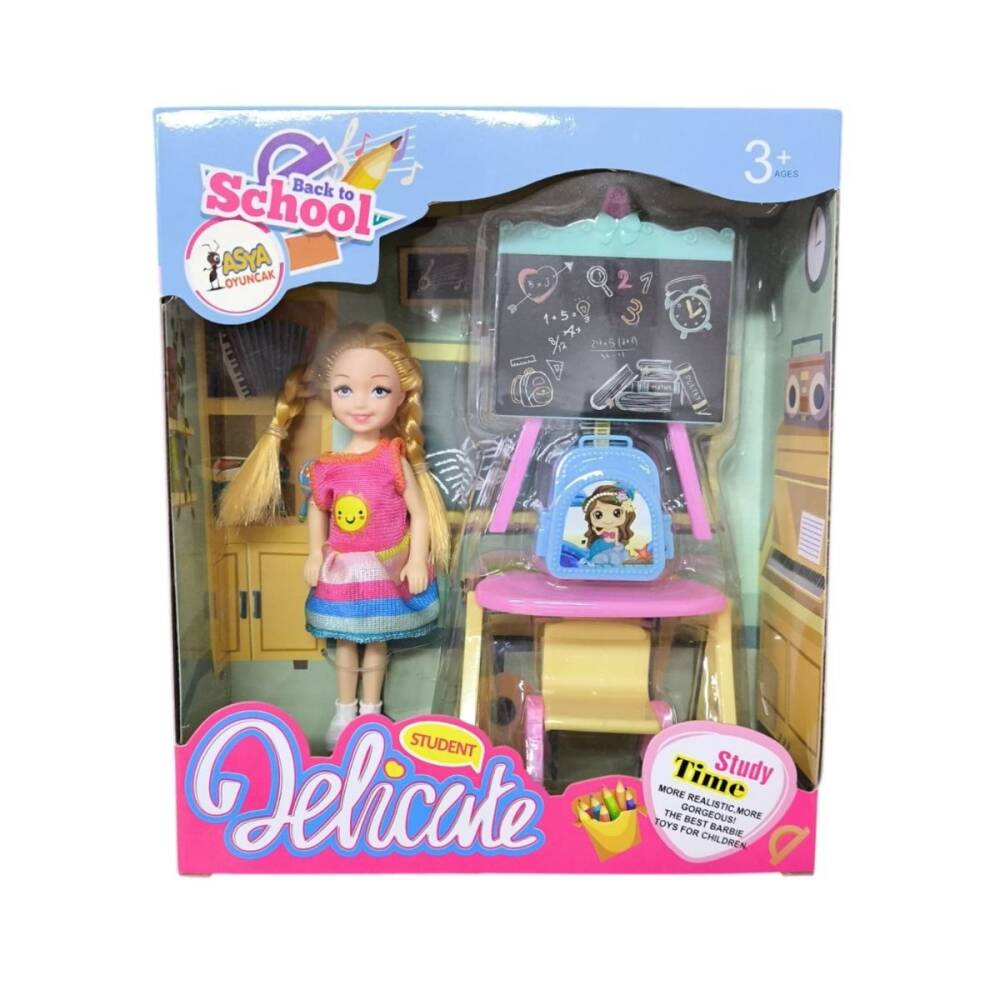 - İçerik: Oyuncak Bebek, 1 Adet Okul Çantası, 1 Adet Çalışma Masası, 1 Adet Sandalye, 1 Adet Yazılı Kara Tahta Oyuncağı.