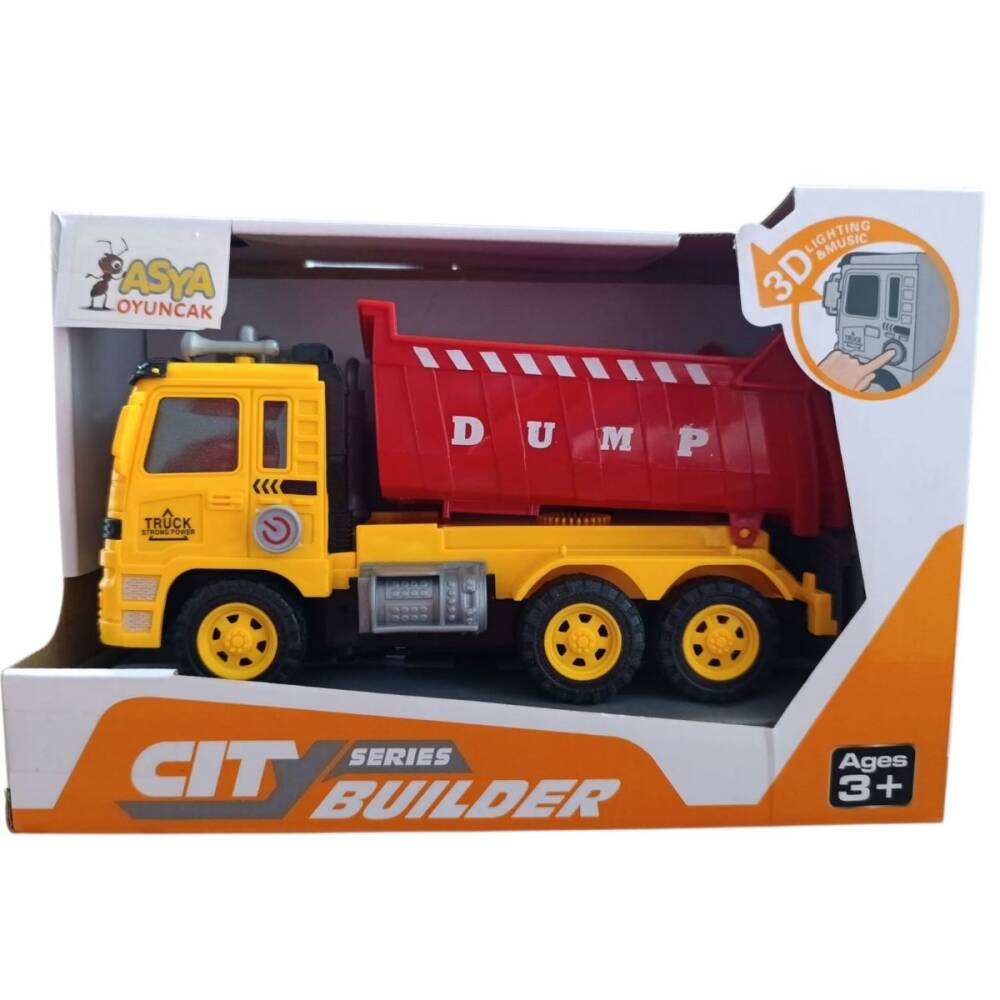 Asya Oyuncak Pilli Işıklı Sesli İş Makineleri-998-43D4-Sarı Kırmızı