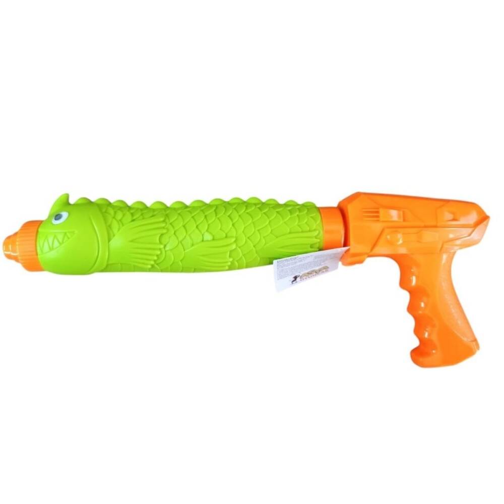 1116 Su Pompası Balık Başlı 37 cm, çocukların açık hava oyunlarında eğlenceli vakit geçirmelerini sağlayan renkli ve fonksiyonel bir su tabancasıdır. Dayanıklı yapısı ve pratik kullanımı ile uzun süreli eğlence sunar.