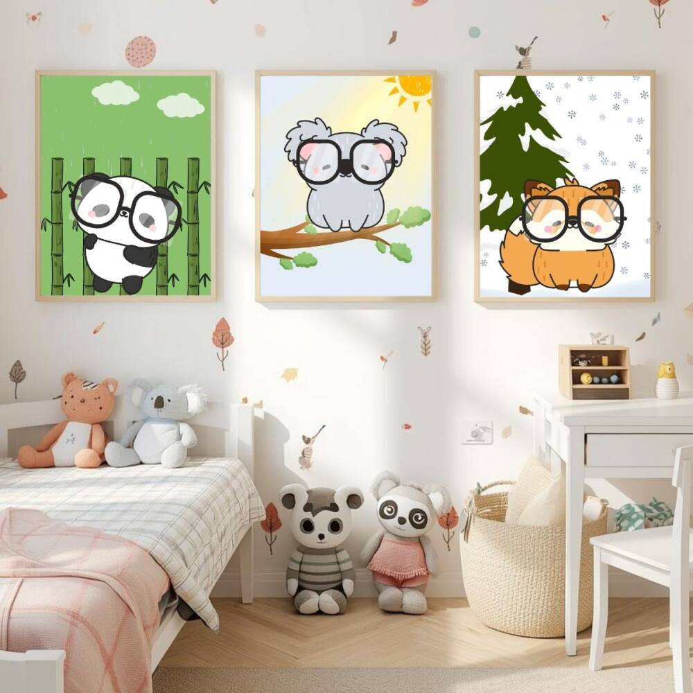Besay Gözlüklü Dostlar:Panda, Koala ve Tilki Çocuk Odası Posteri–Dekoratif 3lü Set A3 Çerçevesiz