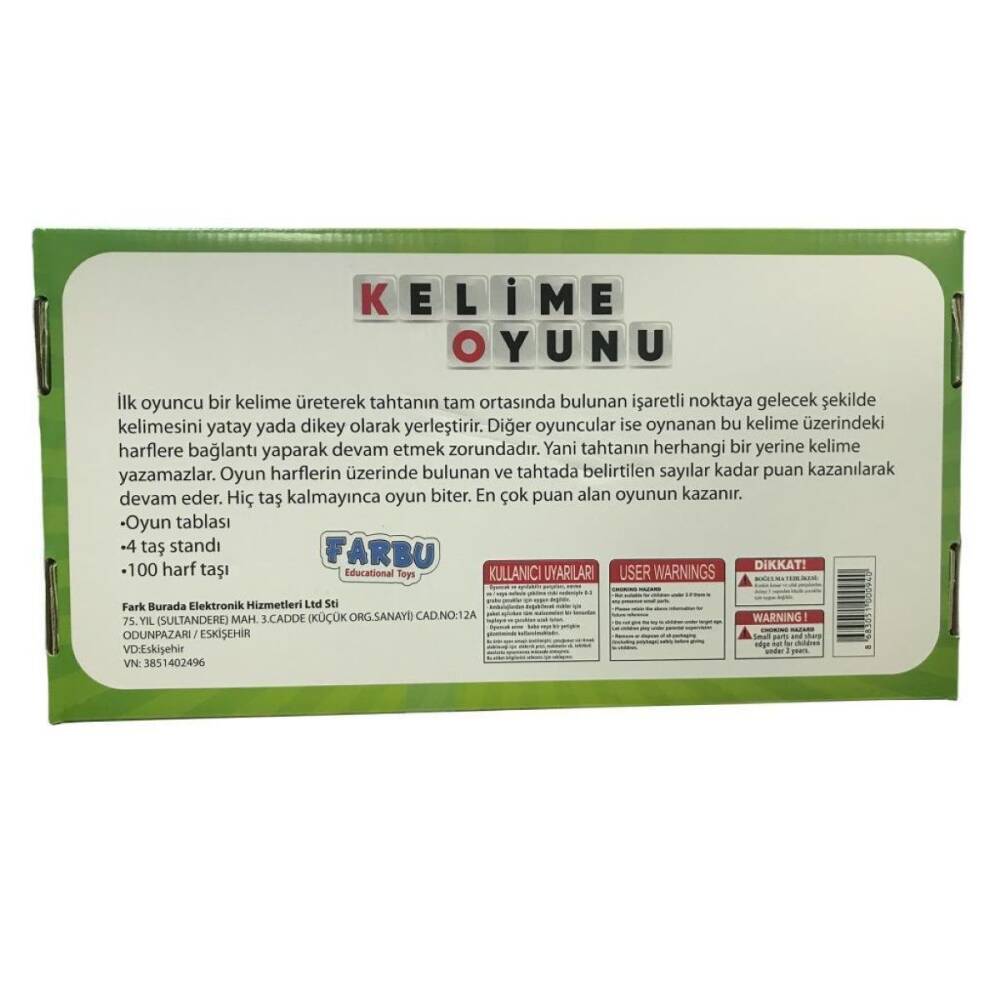 Ürün Özellikleri: Farbu Kelime Üretme Oyunu (Model 0940)
