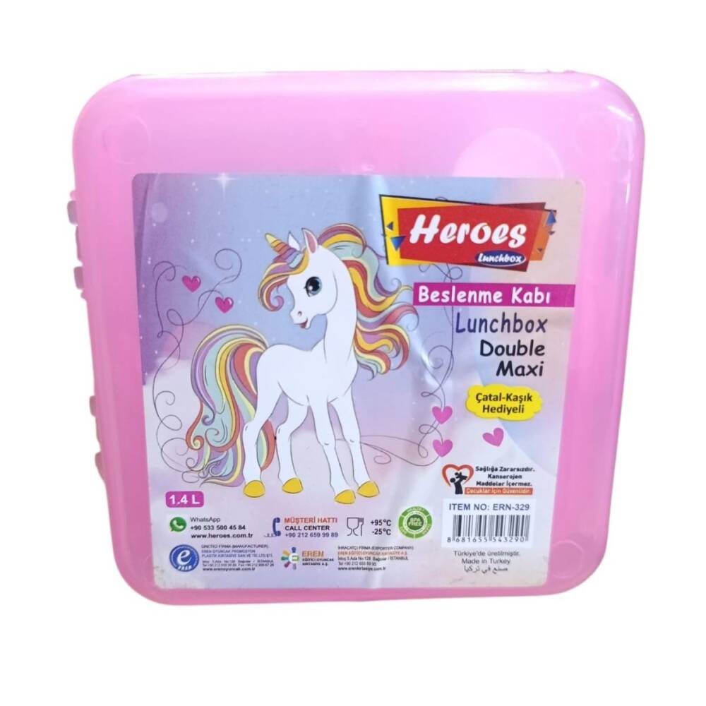 Heroes Double Maxi Beslenme Kabı ERN-329-Pembe Unicorn